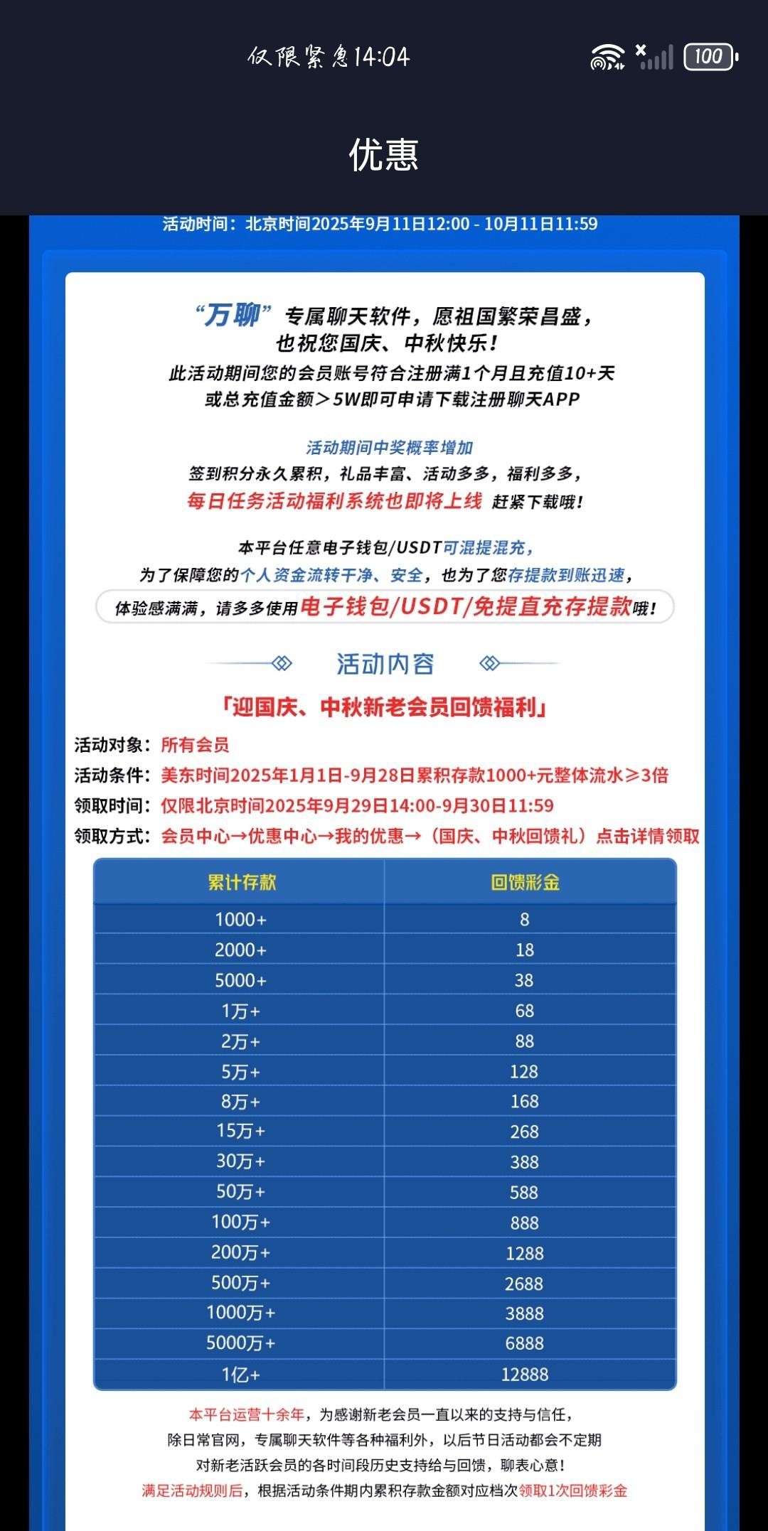 今年充值过去国庆回馈这一系列台子都有