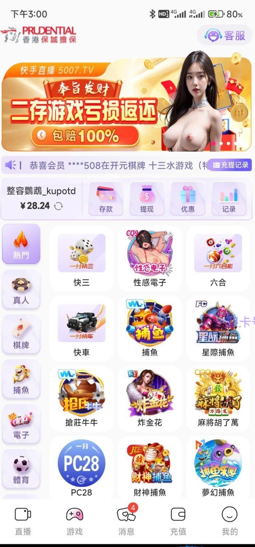 【快手直播】回访彩金
