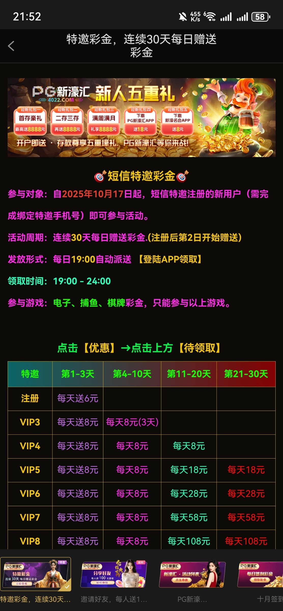 注册社区每日送10-50金币