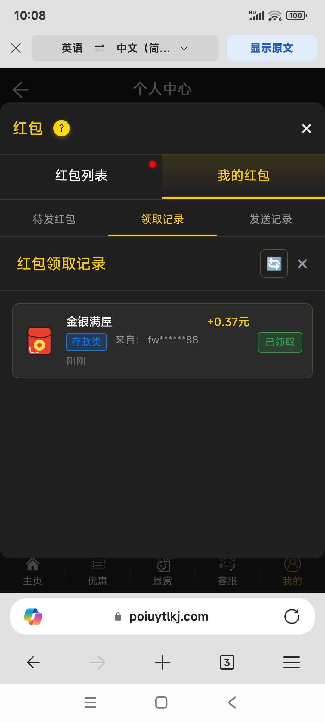 天胜娱乐每天可以免费领取一次红包,打到100就可以提款 tts118.vip
