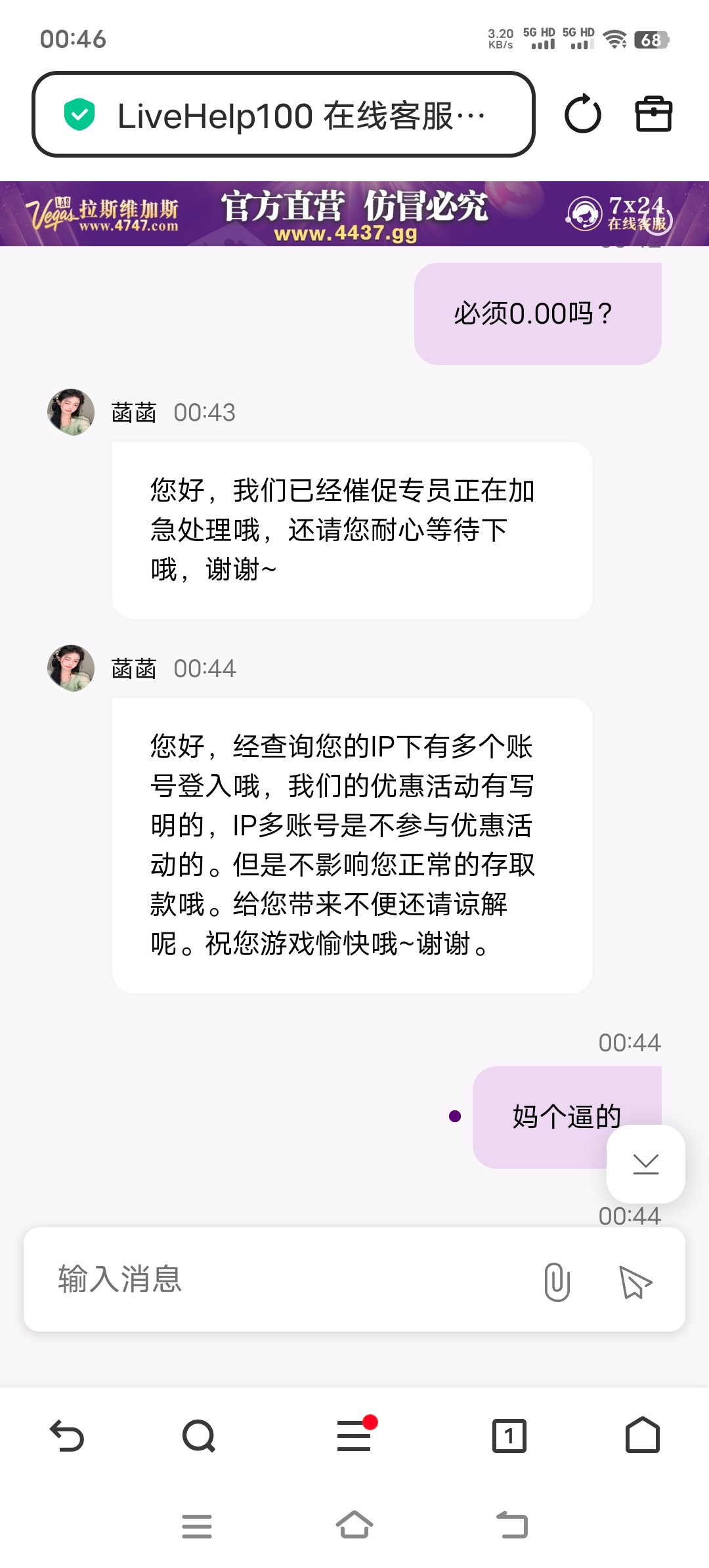 拉斯维加斯黑平台,说了放水,说了包赔,pg进去八毛一拉,200块拉到输完,最大一次得7.65元!输完找他包赔,他找各种理由说账号不符合