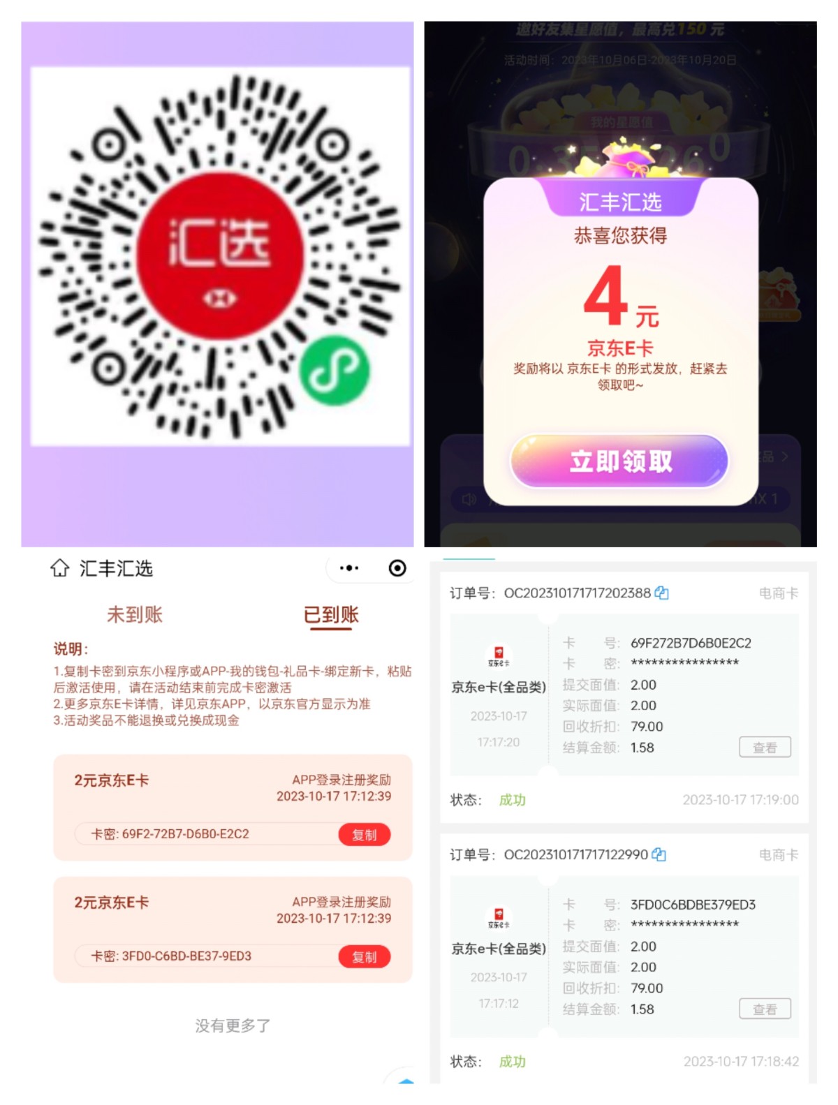 看图秒卖微信扫码手机号注册领取然后下载app登录点击首页汇选星推官进入领取必中4/200e卡人人都有手机号多的多撸