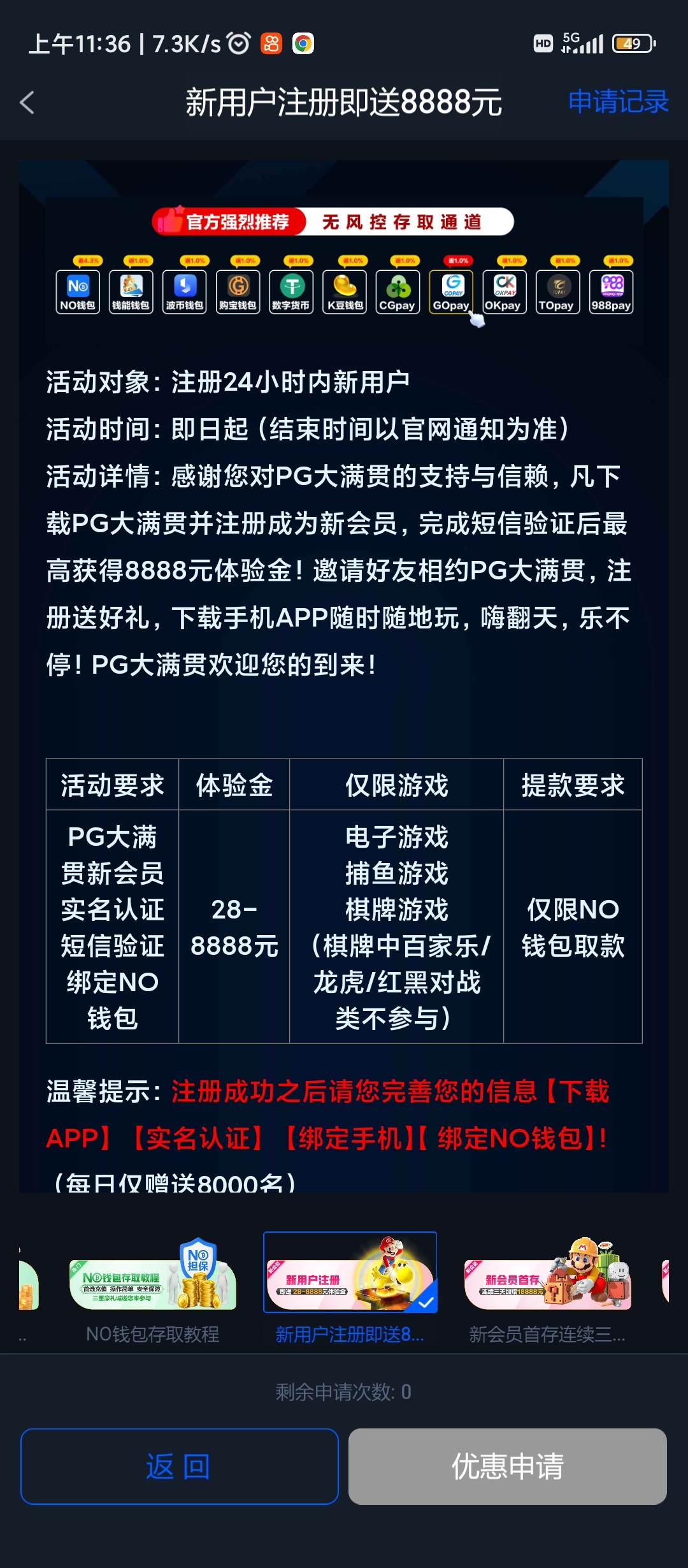 和之前那个pg台一样活动里面自己申请